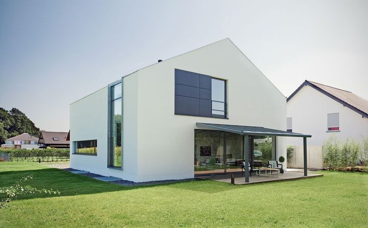 Regenrinne mit bis zu 7 mm Profilstärke und innenliegender Entwässerung serienmäßig